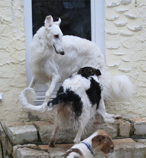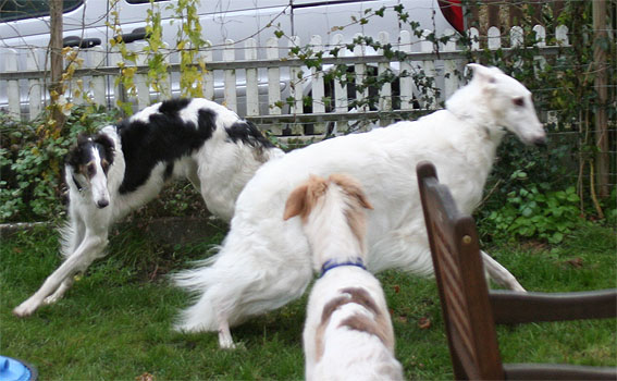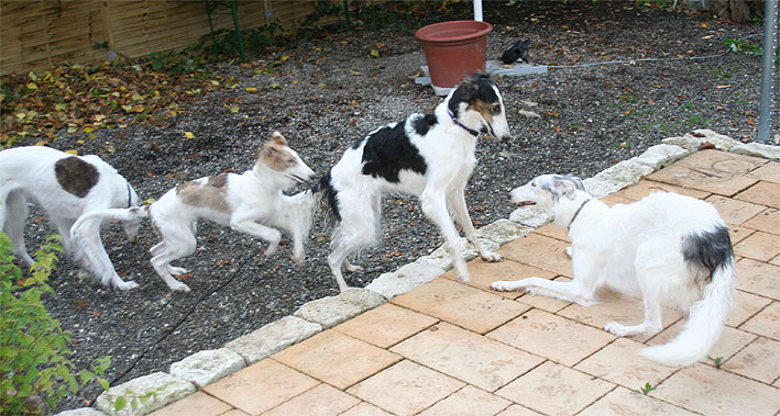 after the mating our other dogs also came to play in Yvonnes Garden