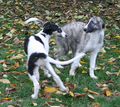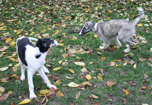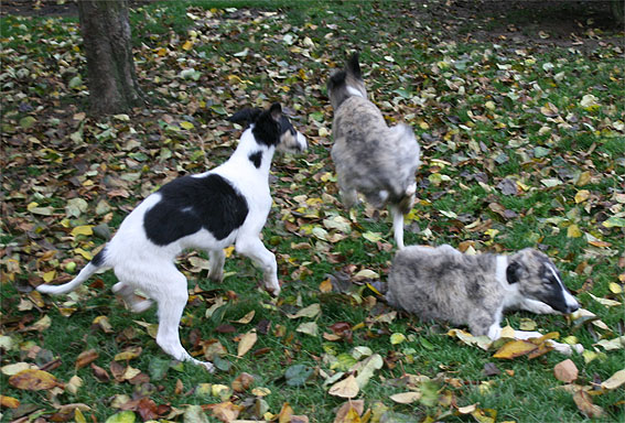 Our Puppies, Ischyma Polonius, Ischyma Princes and Ipatyev Hazi Cezarina Carewna, playing in the Garden in the age of about 3 months