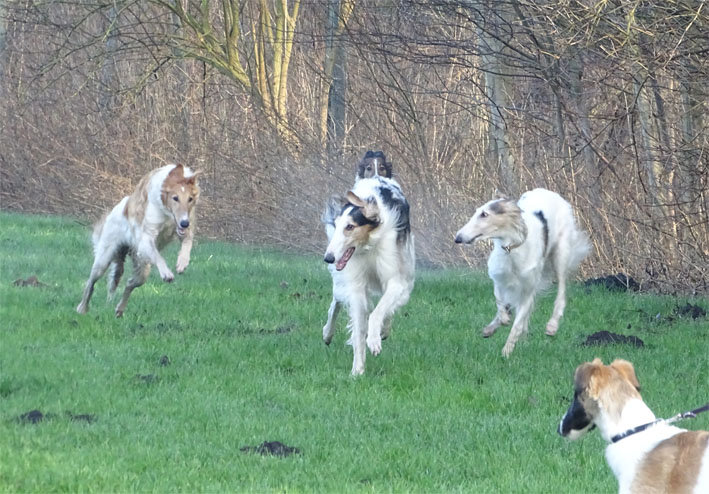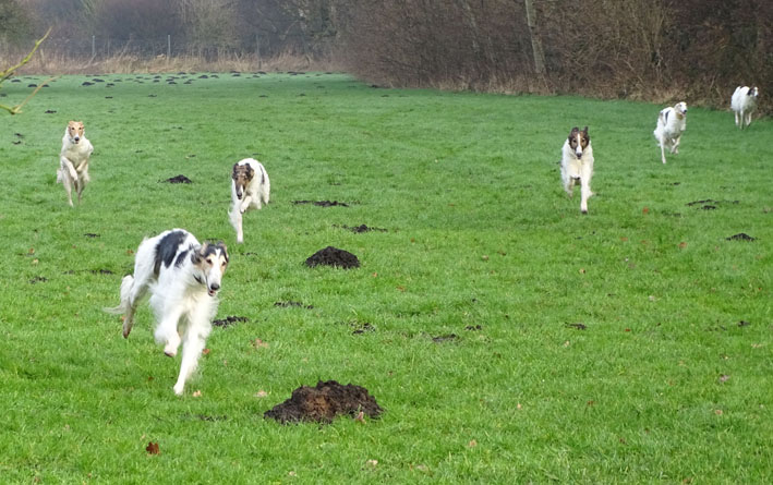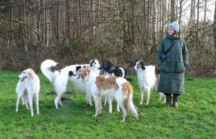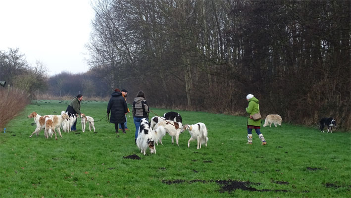 Einige Ischyma Barsois und Freunde treffen sich auf dem Gelände des