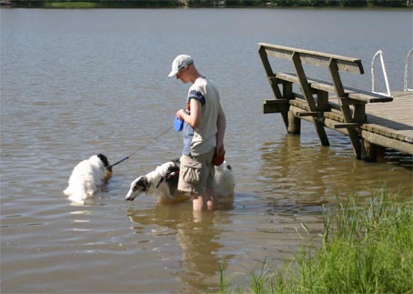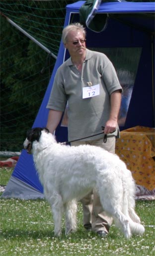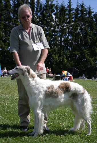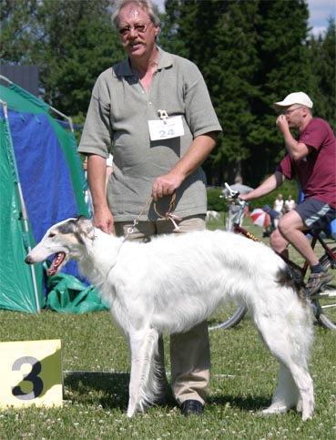 Frederik in Juniorclass at the Sighthoundshow in Mustiala - he got Junior-BOB