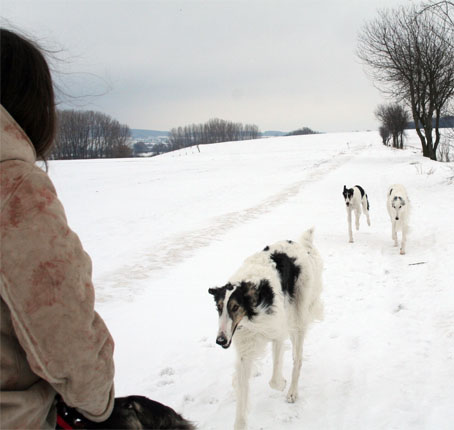 February 2010 with our borzois in the snow